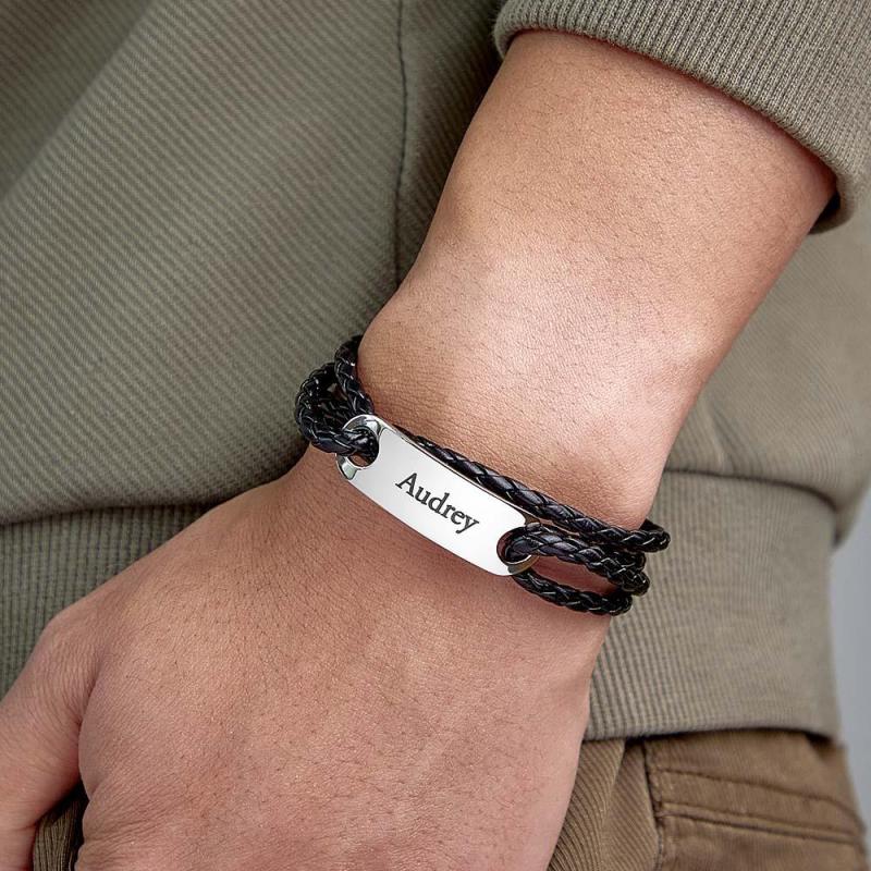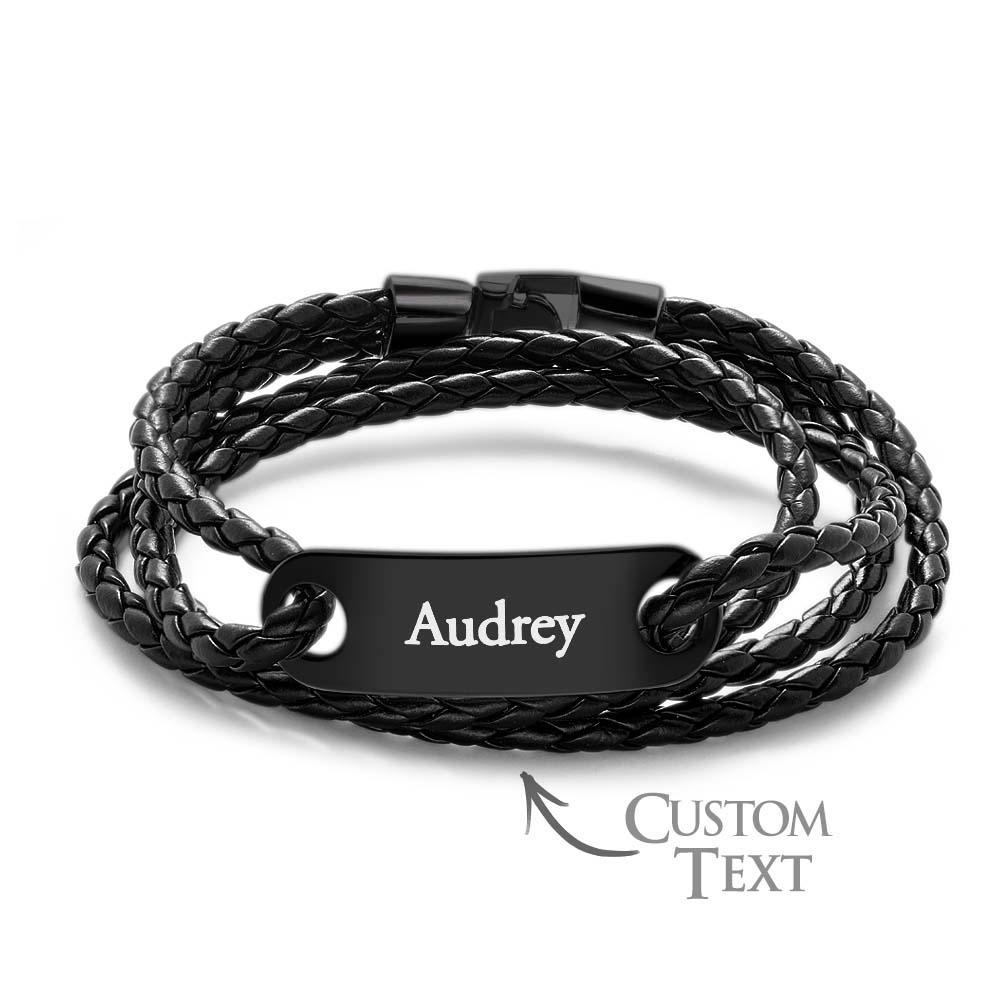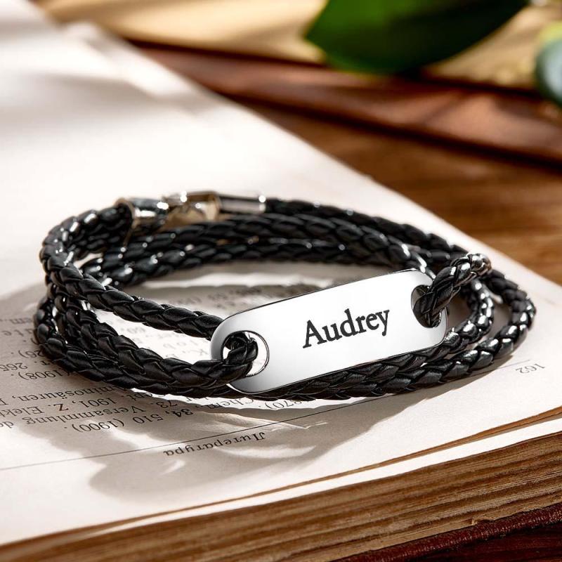 Personalized Leather Bracelet With Name Engraved Multi-Wrap Bracelet Gifts For Him