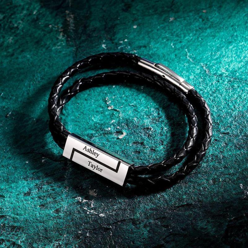 Men's Leather Bracelet Personalized Leather Wrap Bracelet, Engraved Name Bracelet Couple's Gifts