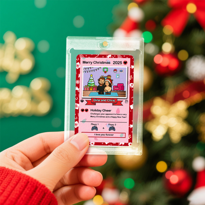 Personalized Merry Christmas Card Present for Family Turn Your Photo into a Unique Collectible Pixel Man Style Card Xmas Gift