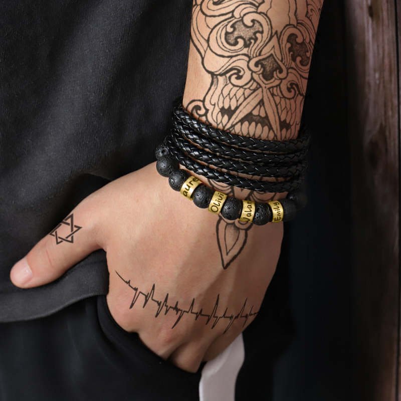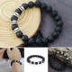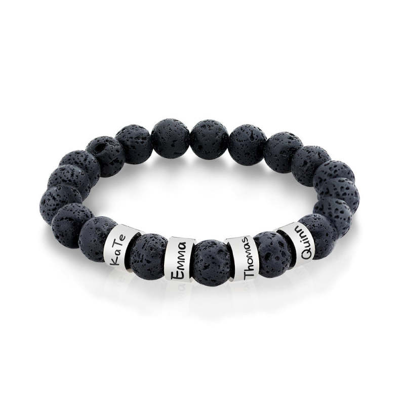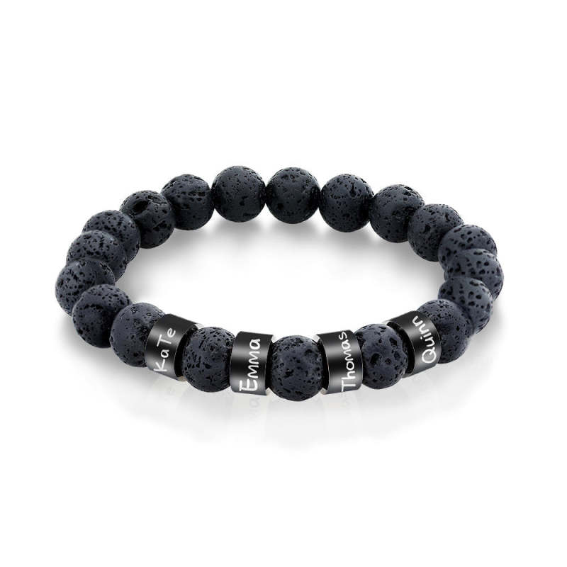 Personalized Name Black Lava Stone Bead Bracelet Gift for Men Husband Father Grandfather