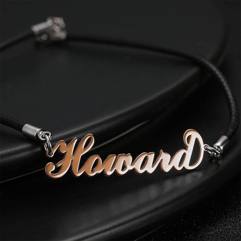 Men's Leather Bracelet Personalized Name Bracelet, Any Name Bracelet Rose Gold Plated - Men