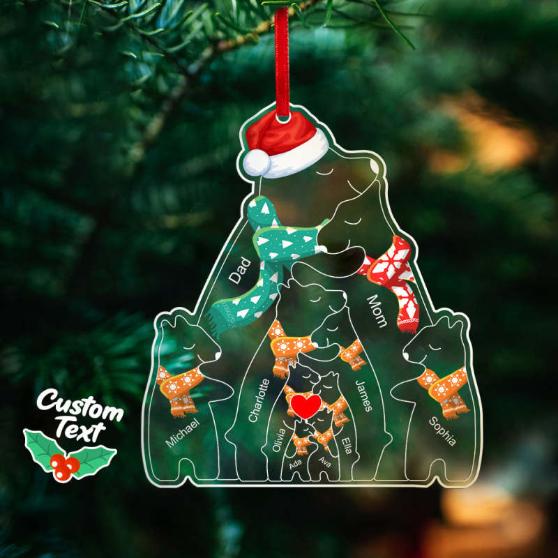 Personalized Names Christmas Bear Family Acrylic Ornament Custom Christmas Keepsake Ornament Christmas Gift Decor