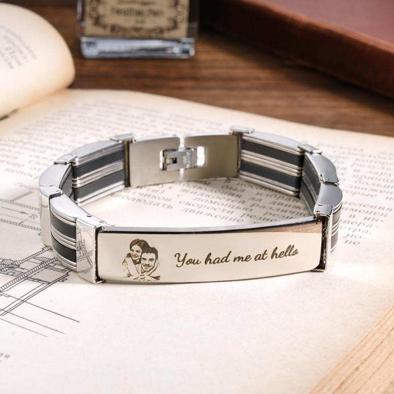 Personalized Photo Bracelet With Text Trendy Bracelet Father's Day Gift For Men