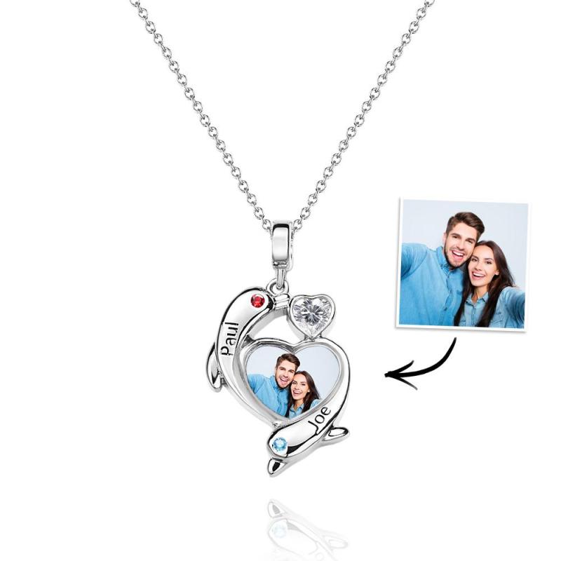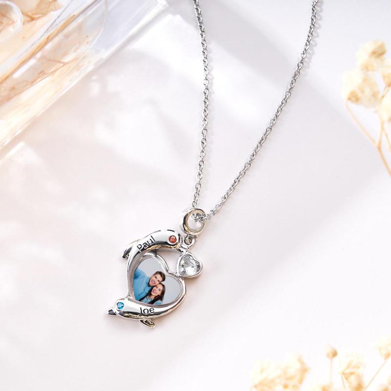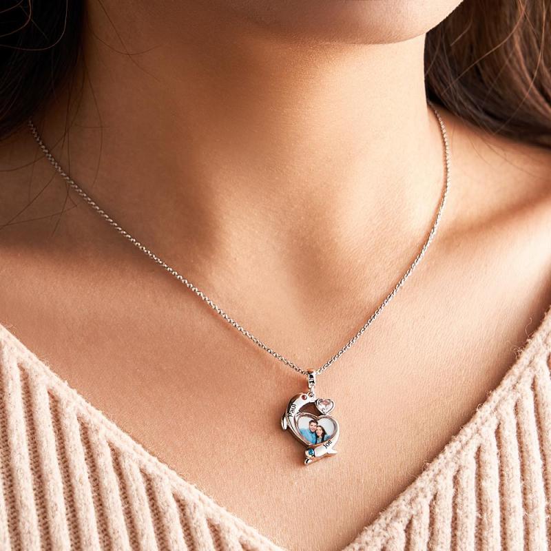 Personalized Photo Dolphin Birthstone Necklace Valentine's Day Gifts For Couples