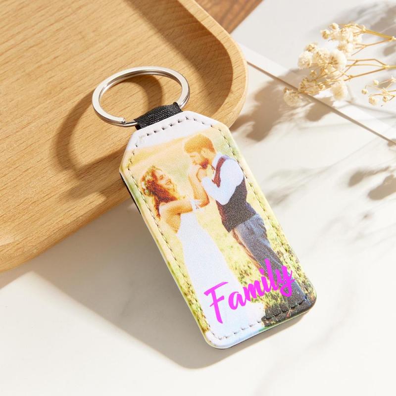 Personalized Photo Keychain PU Vegan Leather Photo Keychain Custom Gifts for Family and Friends