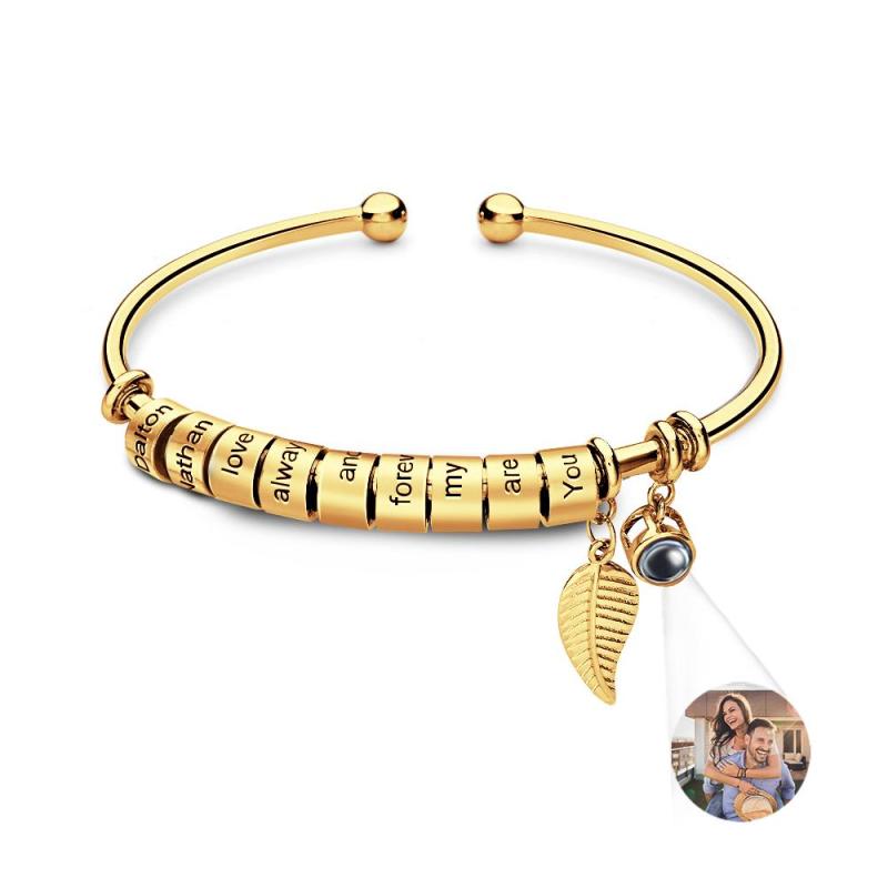 Personalized Photo Projection Bracelet Custom Number Of Optional Engravable Beads Jewelry Gift For Family