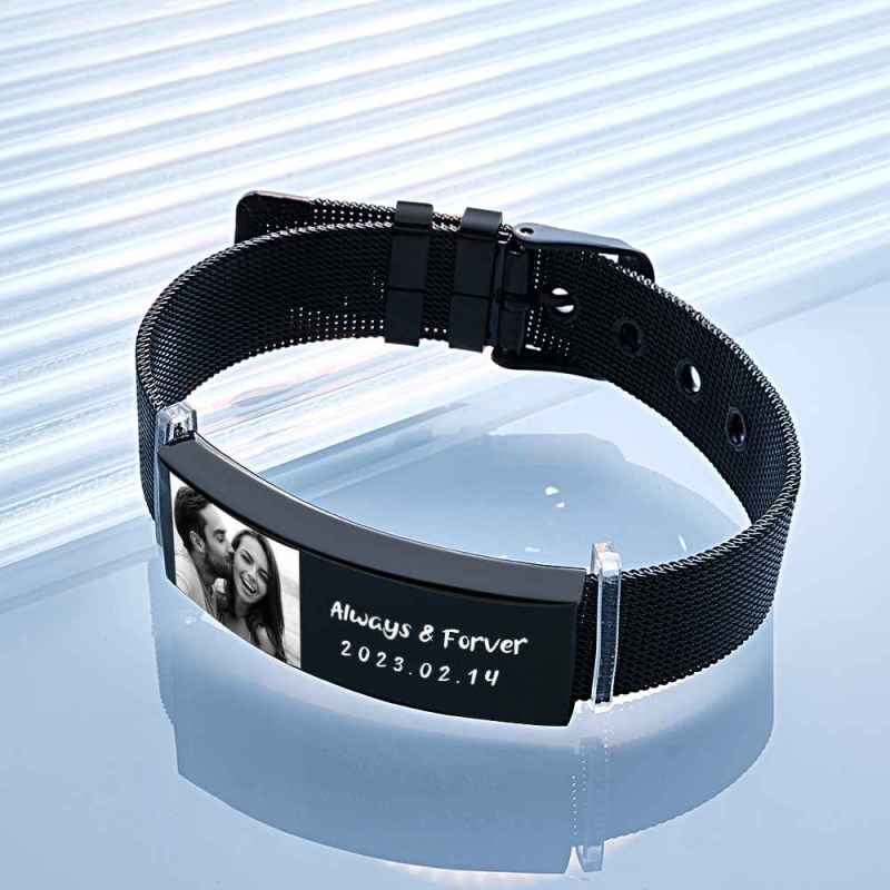 Personalized Photo Retractable Wide Bracelet Engraved Fashion Wide Bracelet For Men