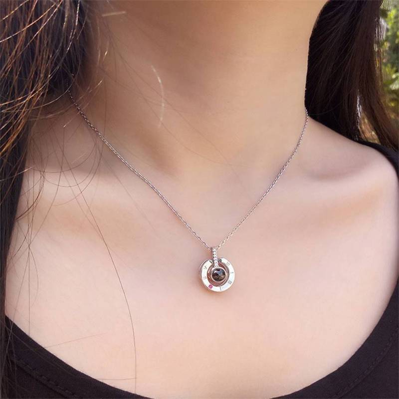 Personalised Photo With 100 Languages Says I Love You Projection Necklace Round-shaped Silver