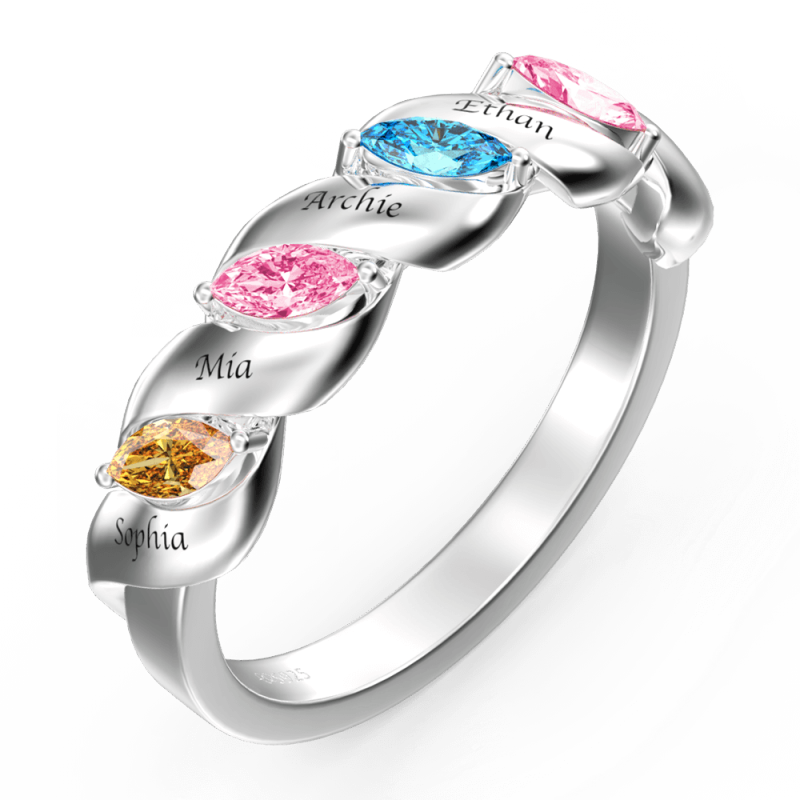 Personalised Birthstone Mother's Ring with Engraving Silver