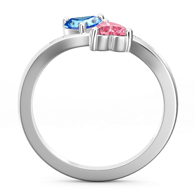 Personalised Birthstone with Engraving Double Heart promise Ring Silver