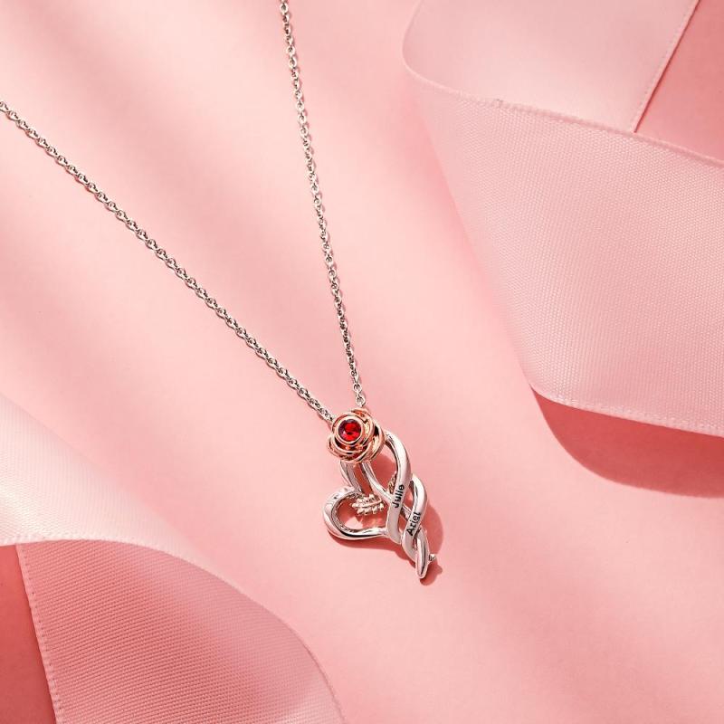 Personalized Rose Necklace with Red Birthstone Pretty Gift for Mom