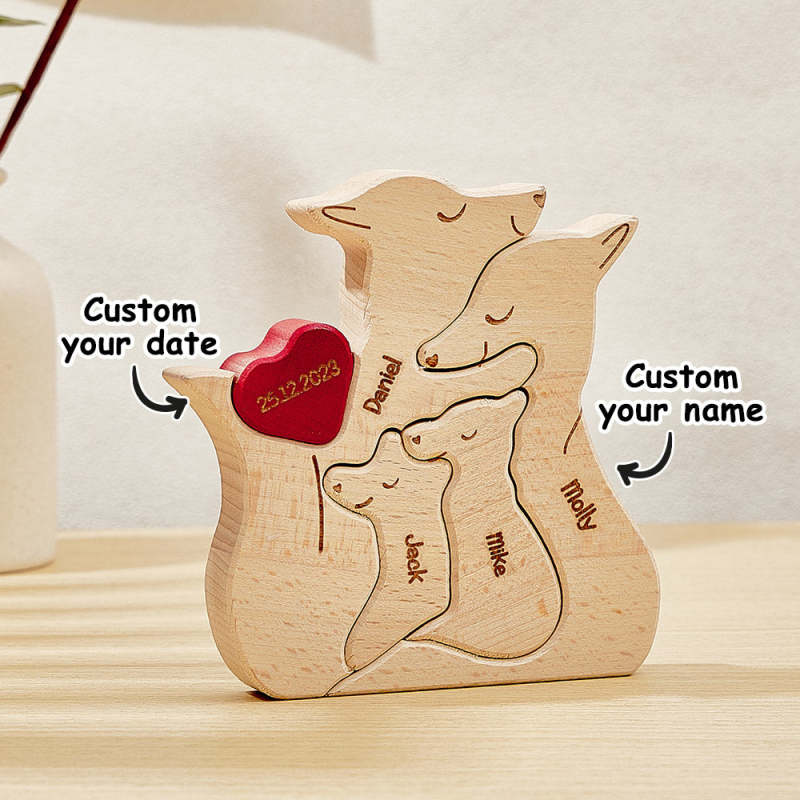 Personalized Wooden Fox Custom Family Member Names Puzzle Home Decor Gifts
