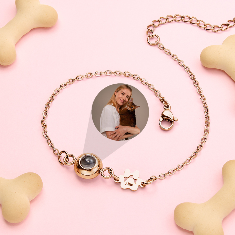 Pet Name Bracelet with Photo, Personalized Pet Projection Bracelet for Women, Pet Lover Gift