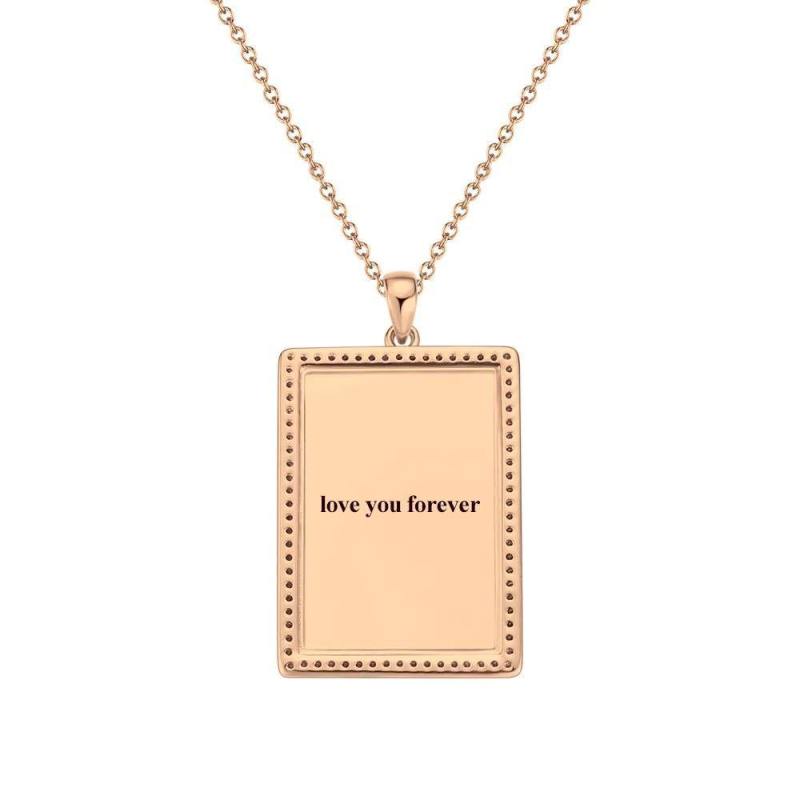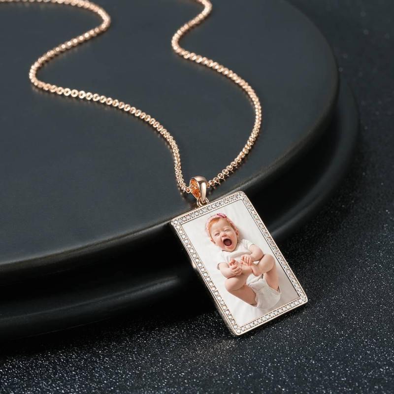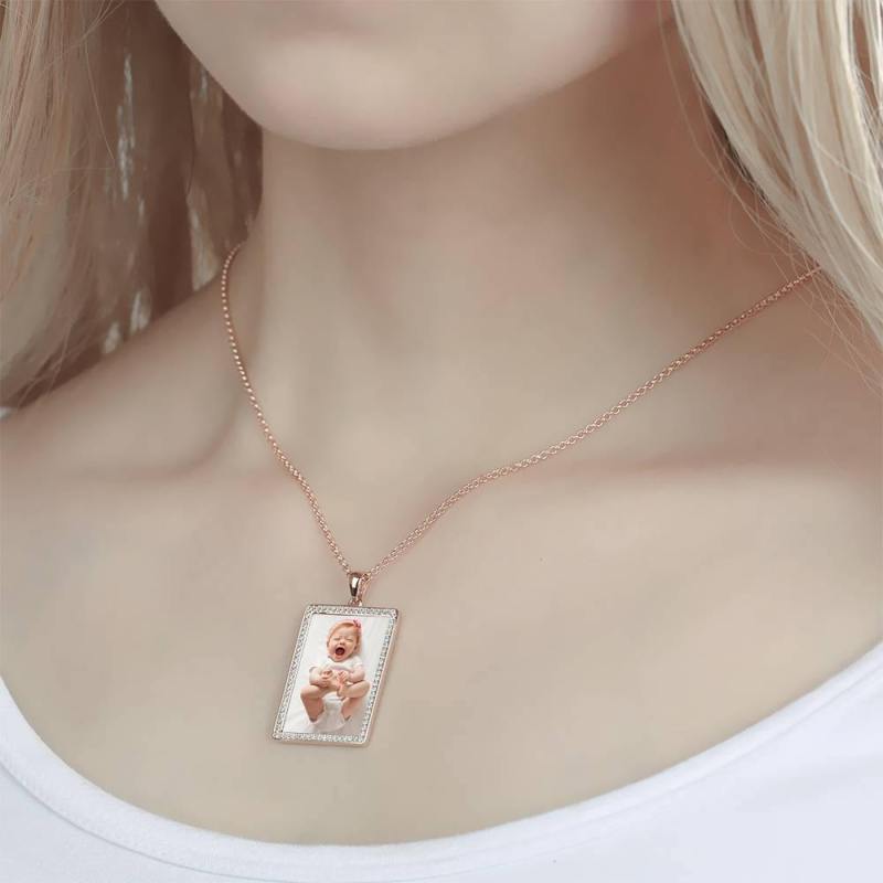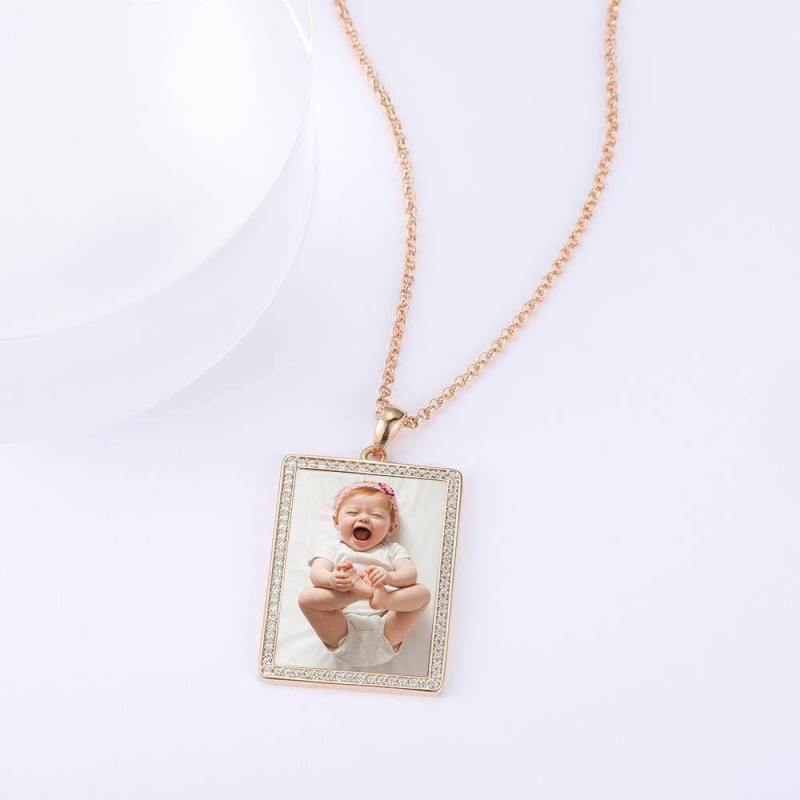Photo Engraved Necklace Rhinestone Crystal, Photo Necklace Keepsake Gift Rose Gold Plated - Colorful