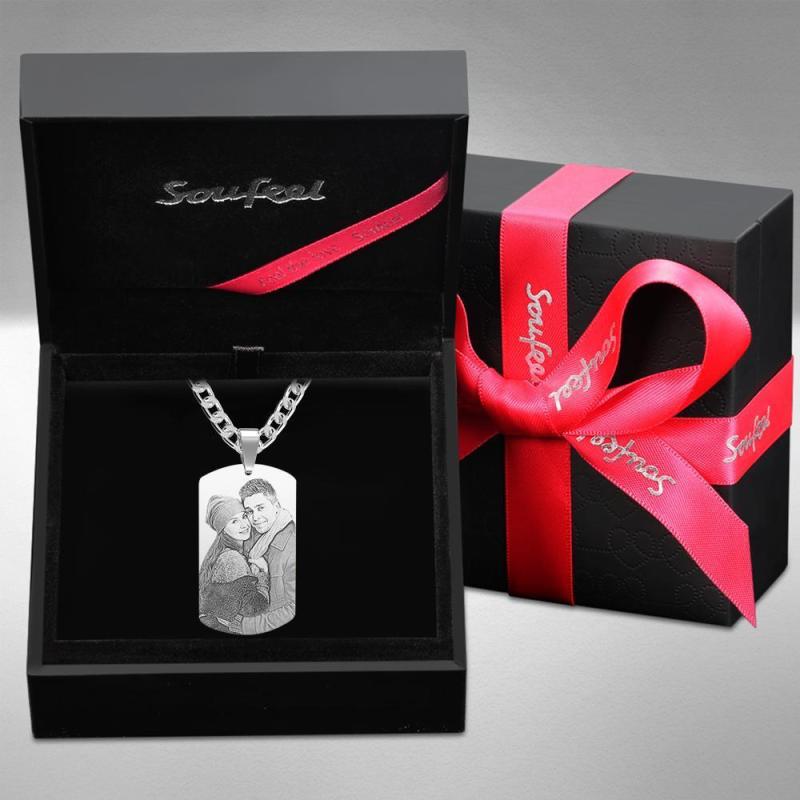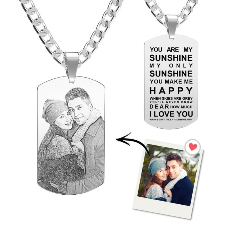 Photo Engraved Necklace Tag Necklace Gift From Love Message Gifts for Wife