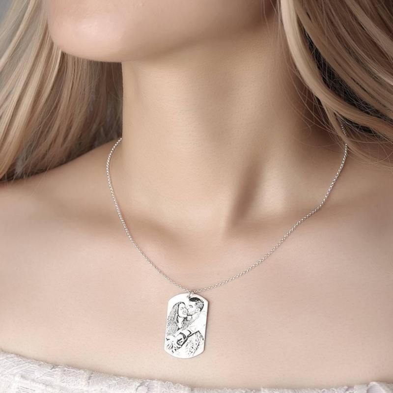 Women's Photo Engraved Tag Necklace with Engraving Silver