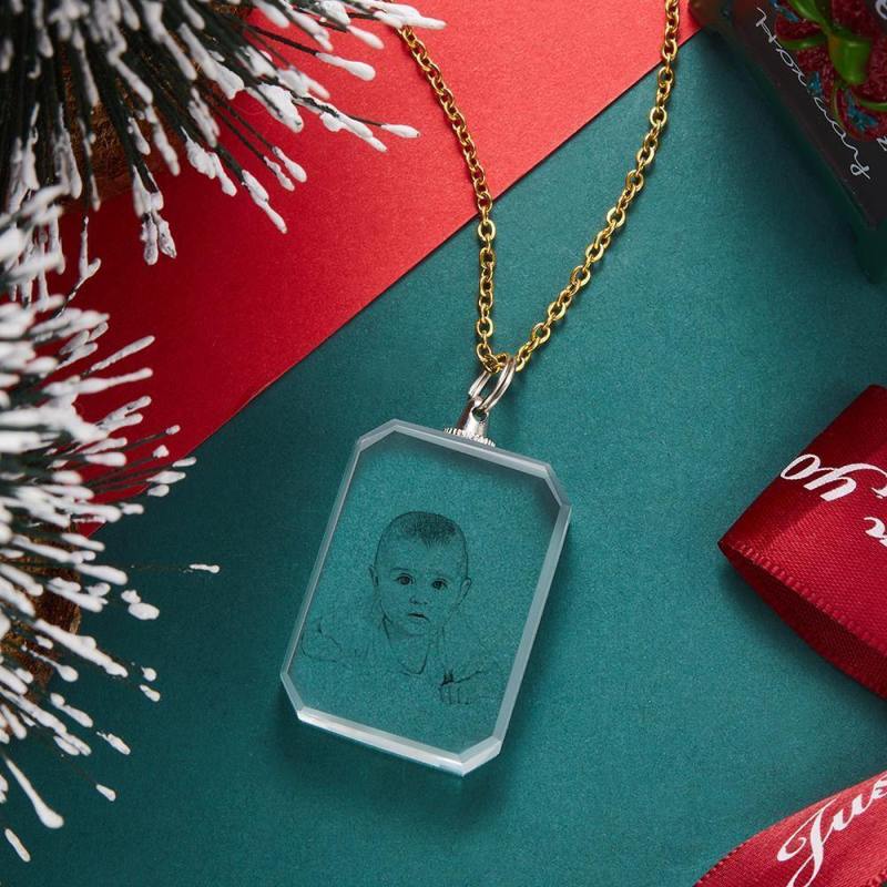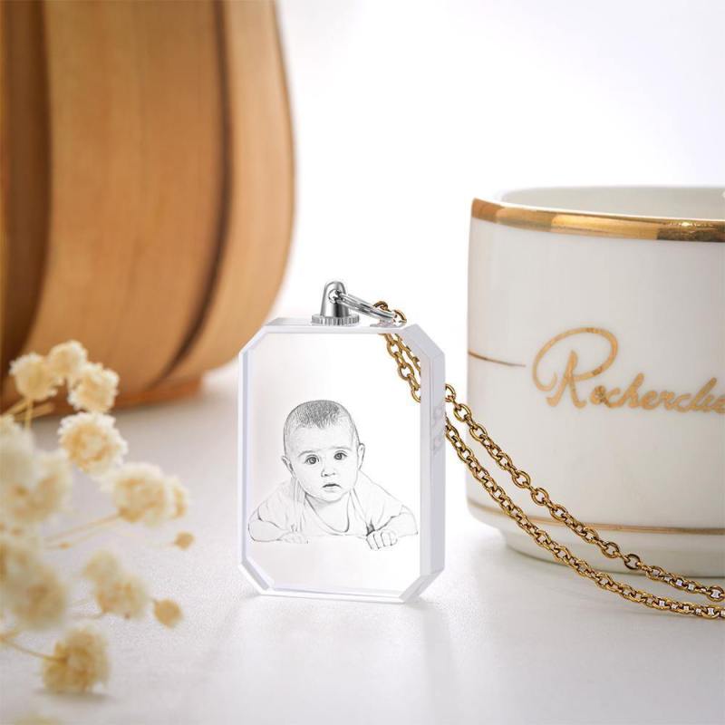 Photo Necklace Laser Engraved Photo Crystal Necklace Silver Color Chain Gifts Ideas Baby Picture Memorial Gifts