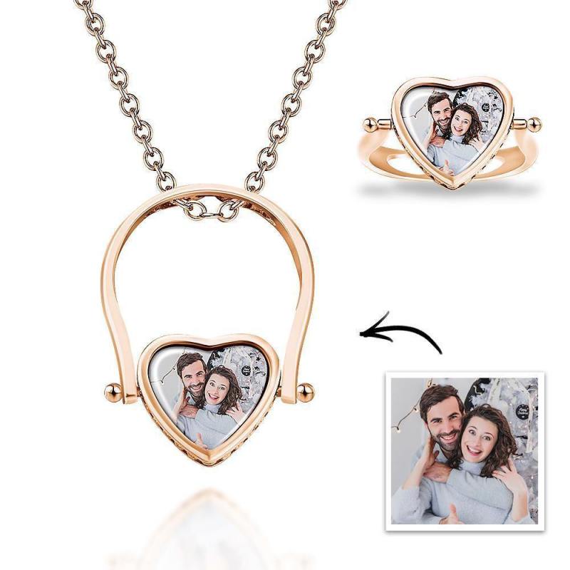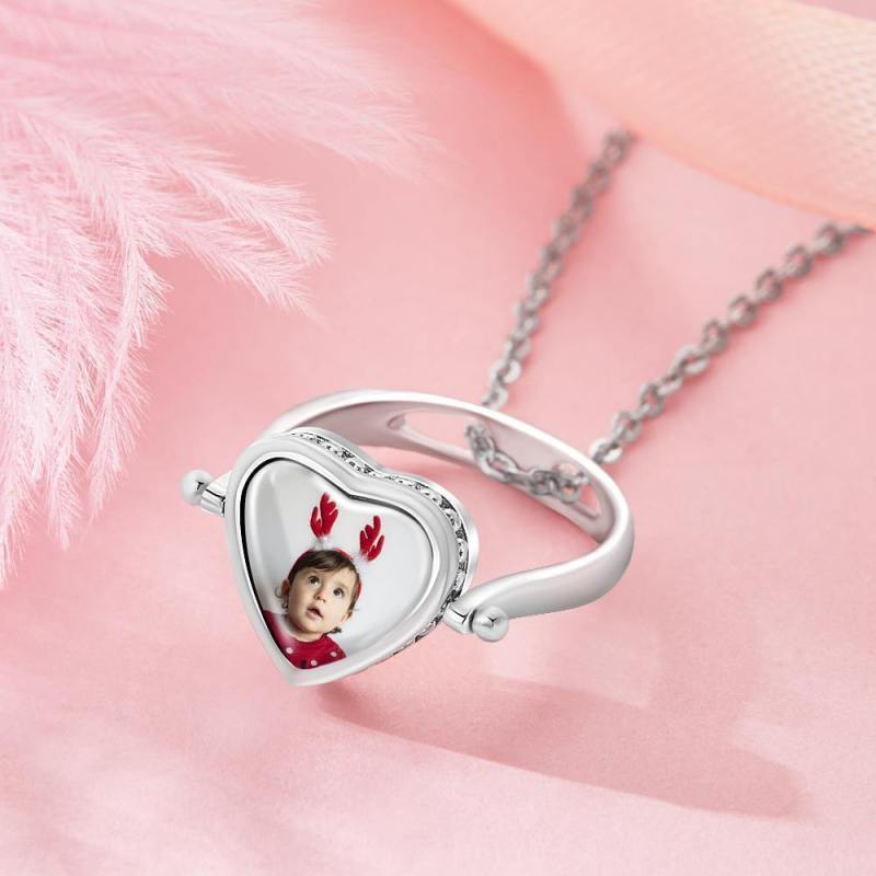Photo Necklace, Photo Ring Couple's Gifts Dual-use (Ring Size 5#)
