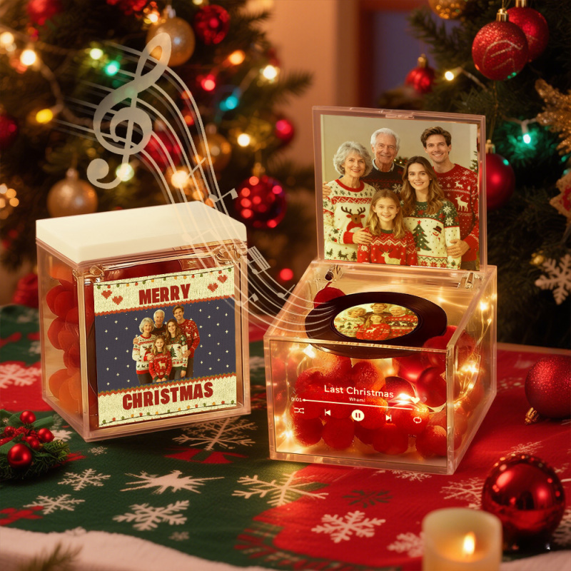 Premium Mini Music Record Auto-Music Player Custom Photo with Light Personalized Music Acrylic Box