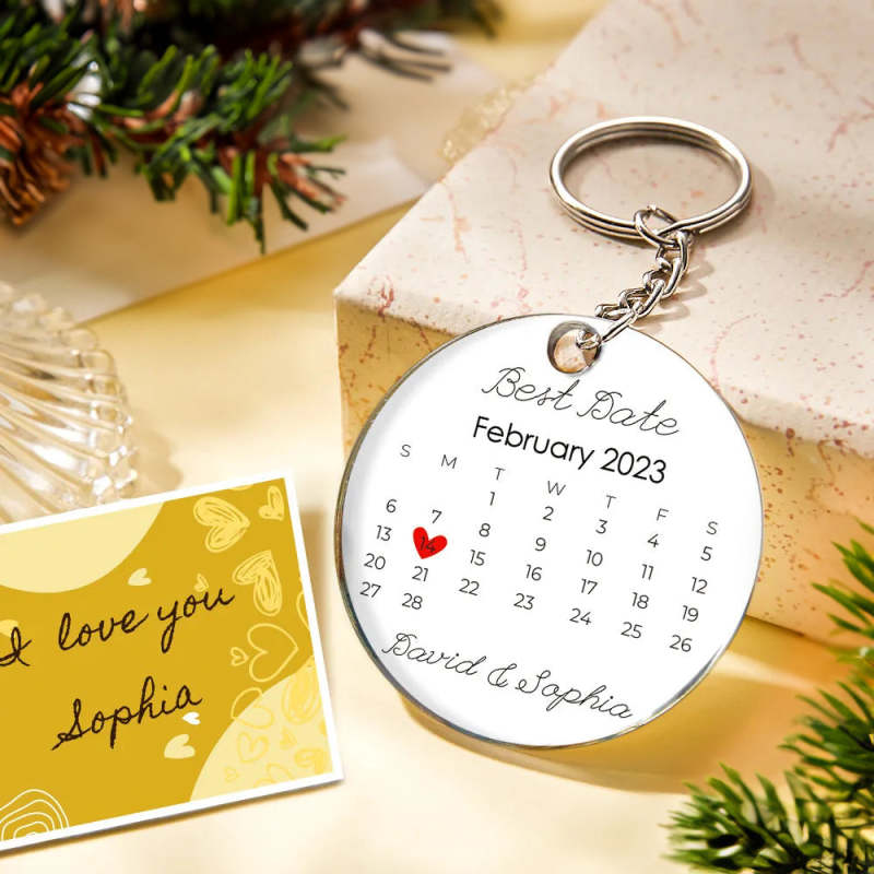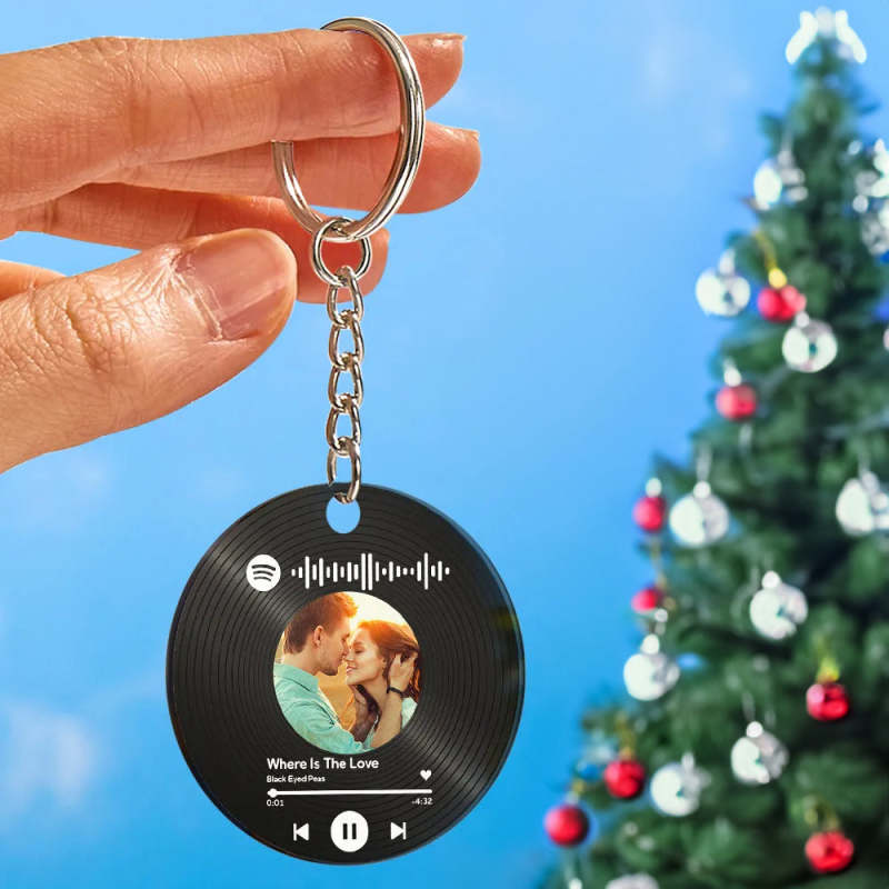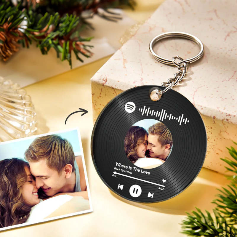 Custom Photo and Date Keychain Calendar Keychain Scannable Spotify Code Keychain Anniversary Gift