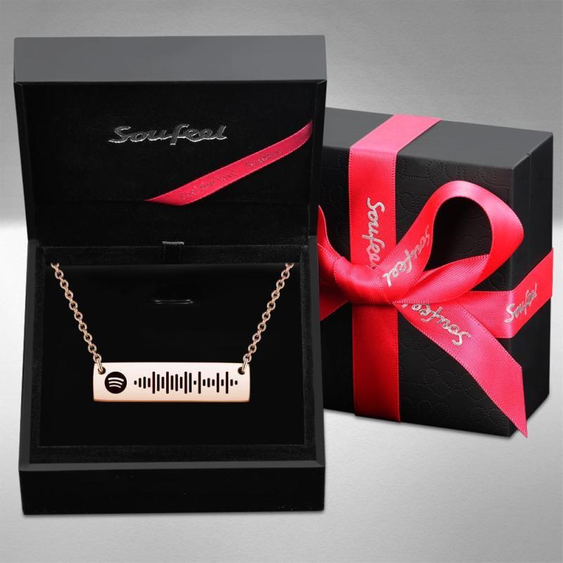Scannable Spotify Code Bar Necklace Engraved Necklace Gifts for Her 50cm+5cm