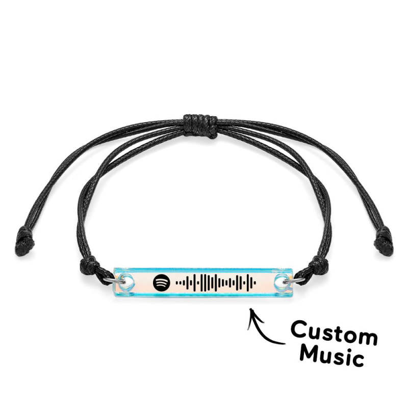 Scannable Spotify Code Transparent Gradient Color Bracelet Personalized Music Laser Colorful Acrylic Plaque Adjustable Bracelet Gift For Him