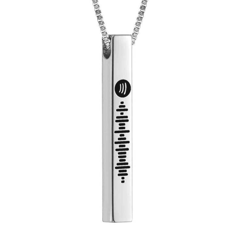 Spotify Code Music Necklace Custom 3D Engraved Vertical Bar Necklace Stainless Steel