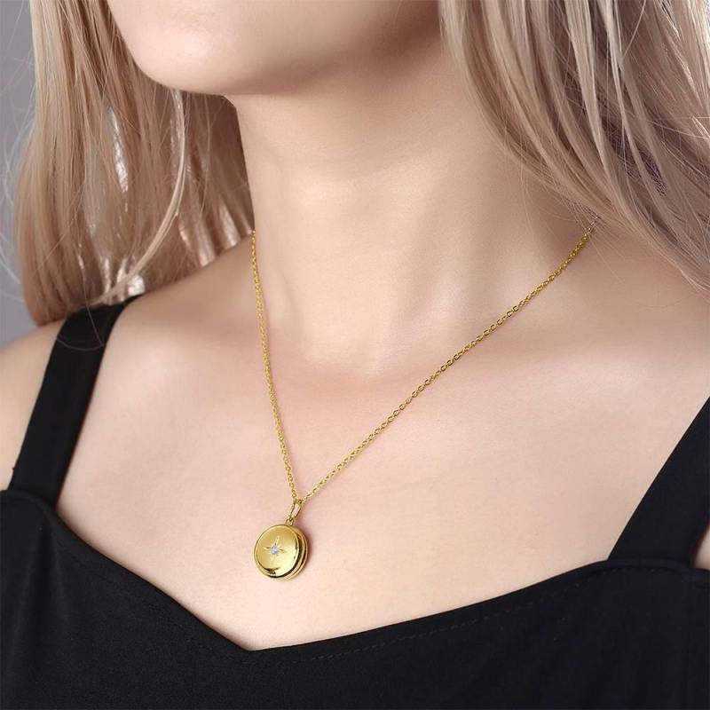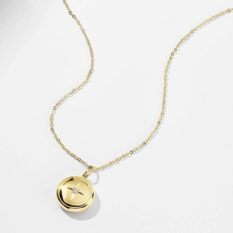 Star Printing Photo Locket Necklace 14k Gold Plated
