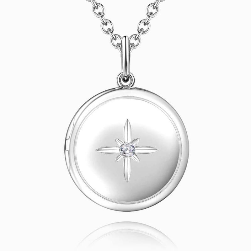 Star Printing Photo Locket Necklace Platinum Plated