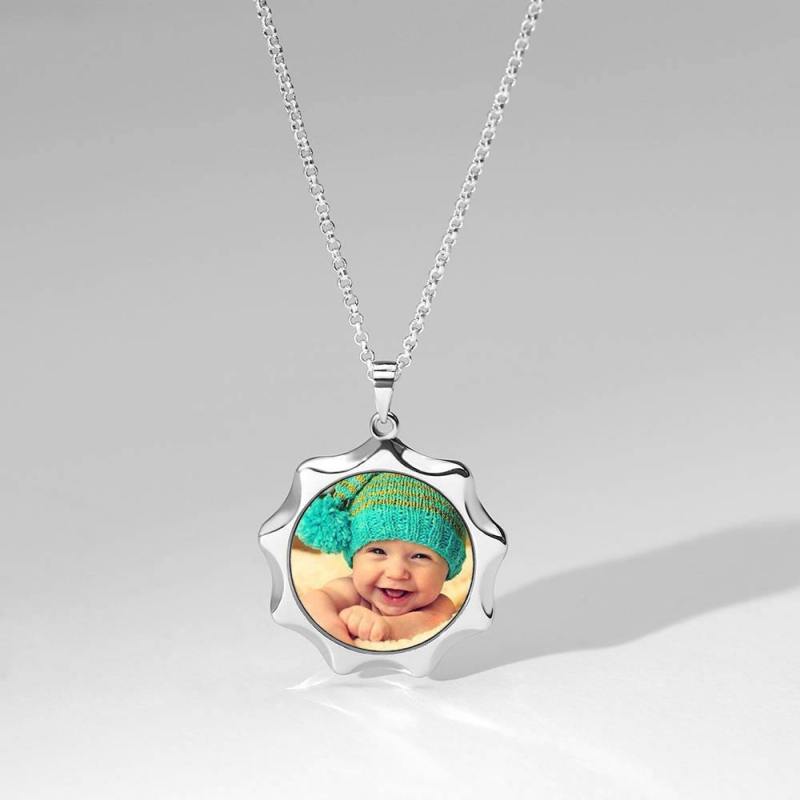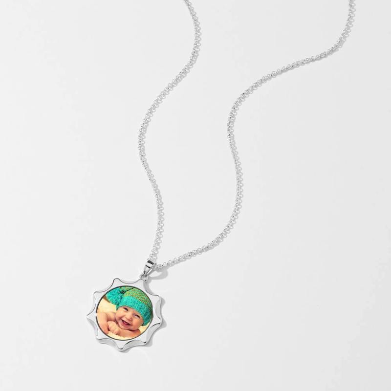 Sun Shaped Photo Necklace Platinum Plated Silver
