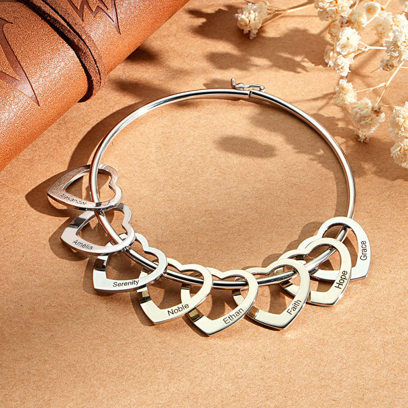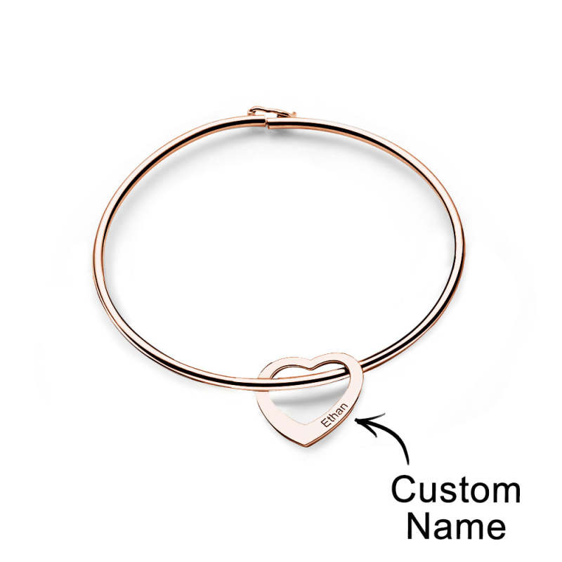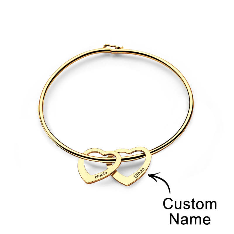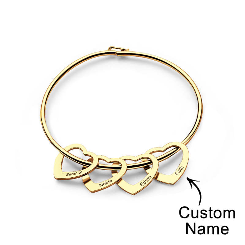 Trendy Engravable Bangle Bracelet with Heart Shape Pendants Gift
