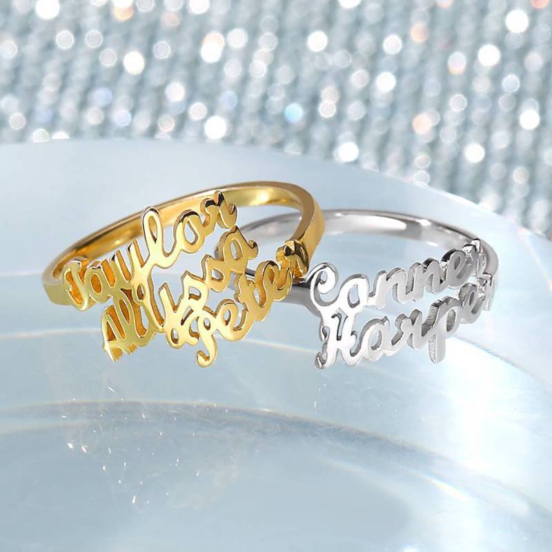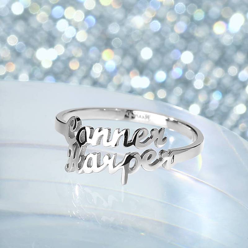 Two Name Ring Silver For Her