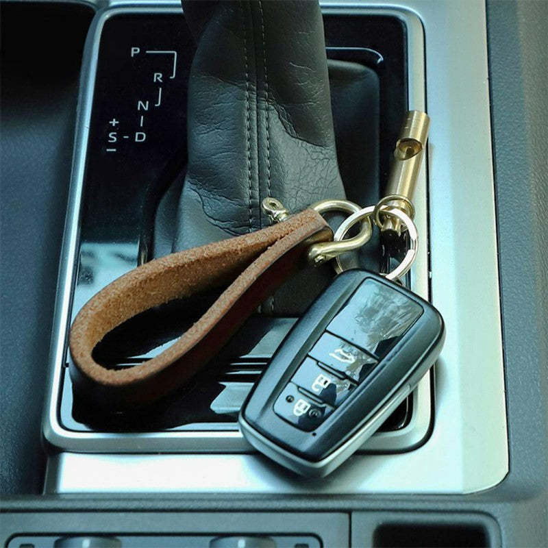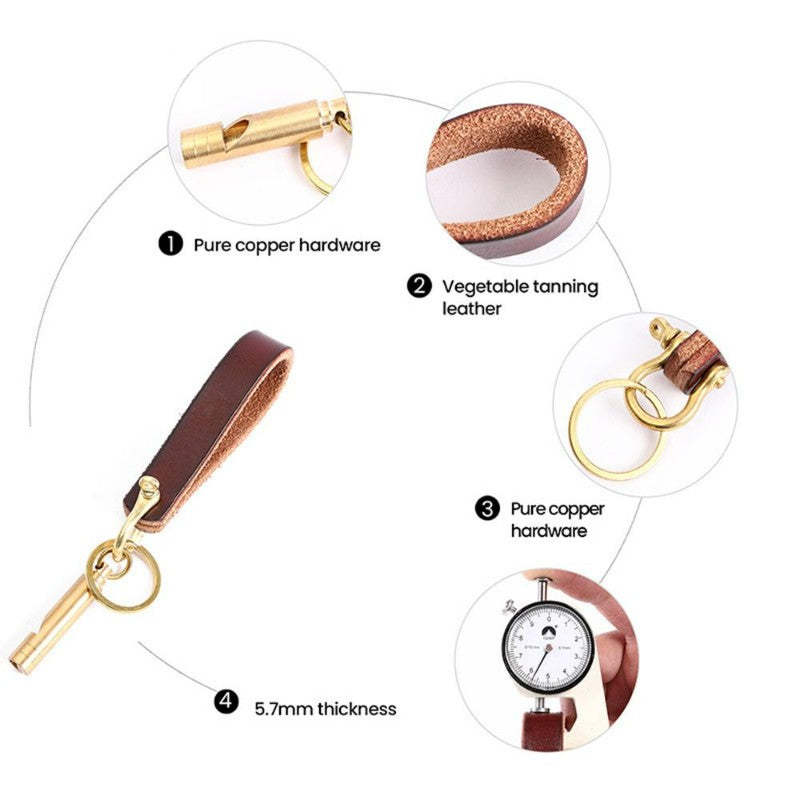 Vintage Leather Car Keychain with Survival Whistle Gift for Men