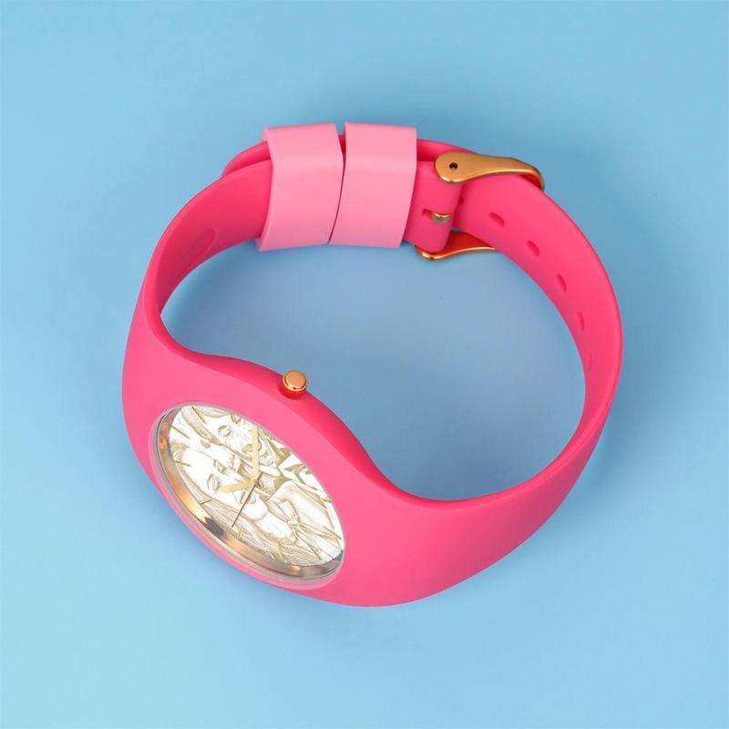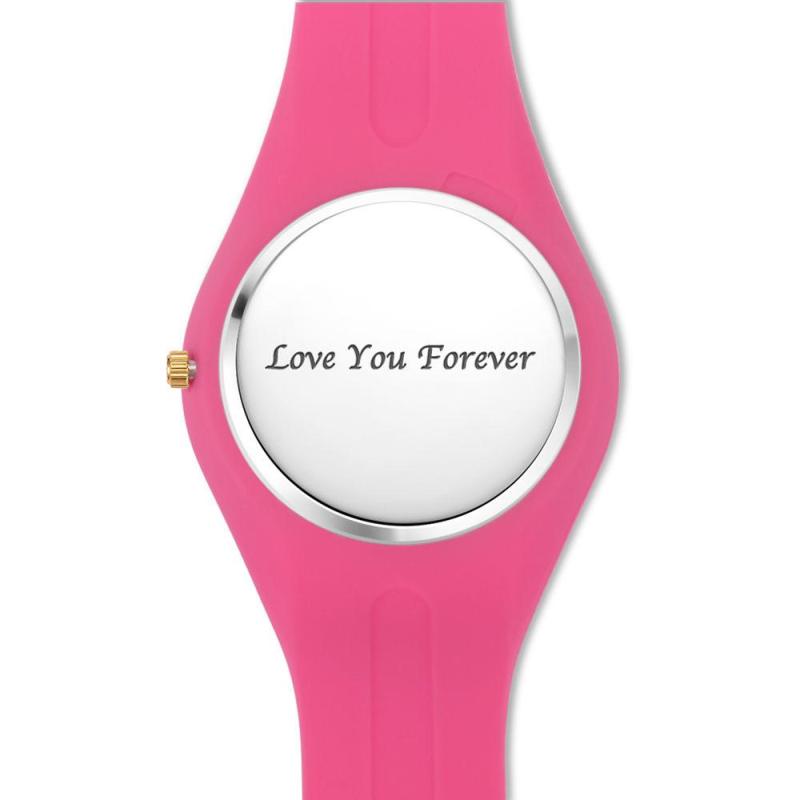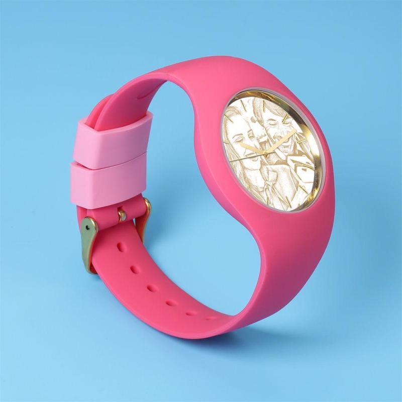 Women's Silicone Engraved Photo Watch Women's Engraved Photo Watch 41mm Pink Strap - Golden