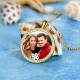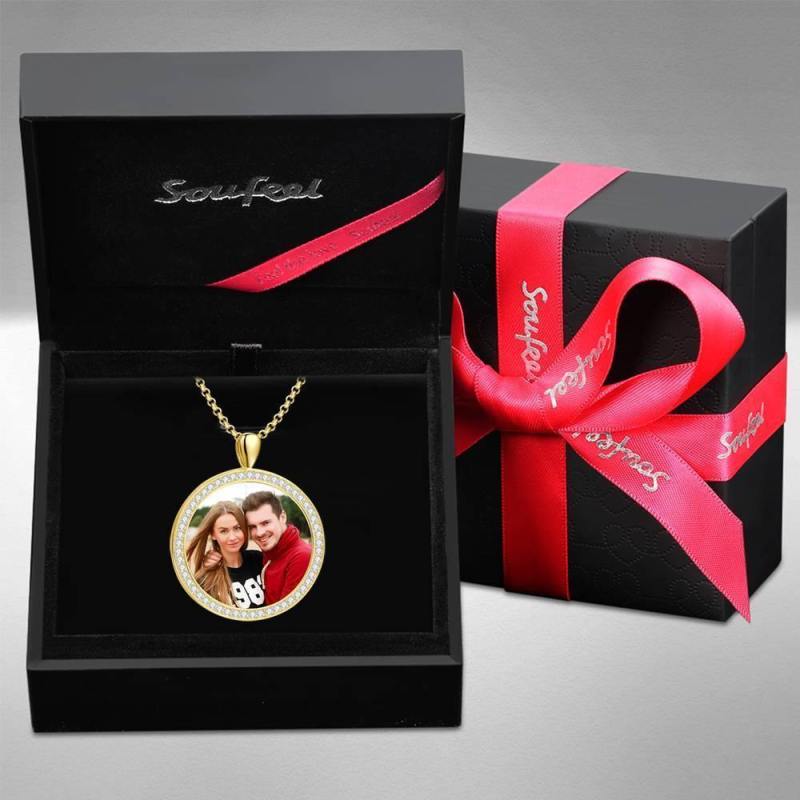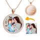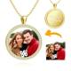 Women's Personalized Photo Engraved Necklace, Rhinestone Crystal Round Shape Photo Necklace 14K Gold Plated Golden - Colorful
