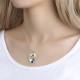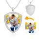 Women's Personalized Photo Engraved Necklace, Rhinestone Crystal Shield Shape Photo Necklace Platinum Plated Silver - Colorful