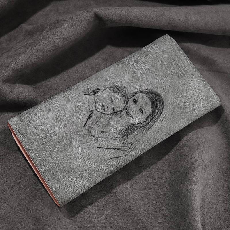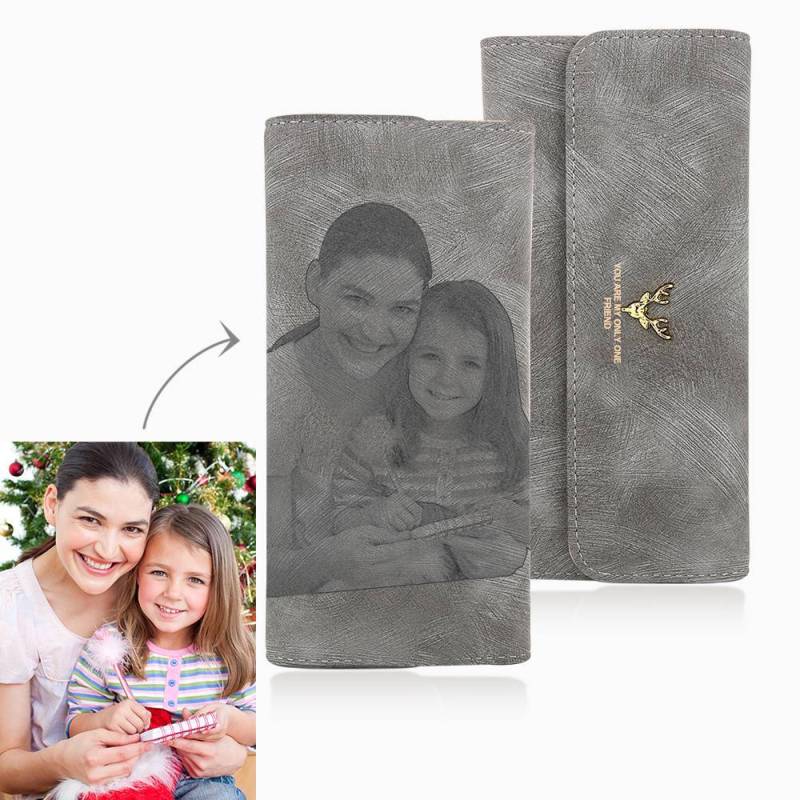 Women's Photo Engraved Trifold Photo Wallet - Grey Leather