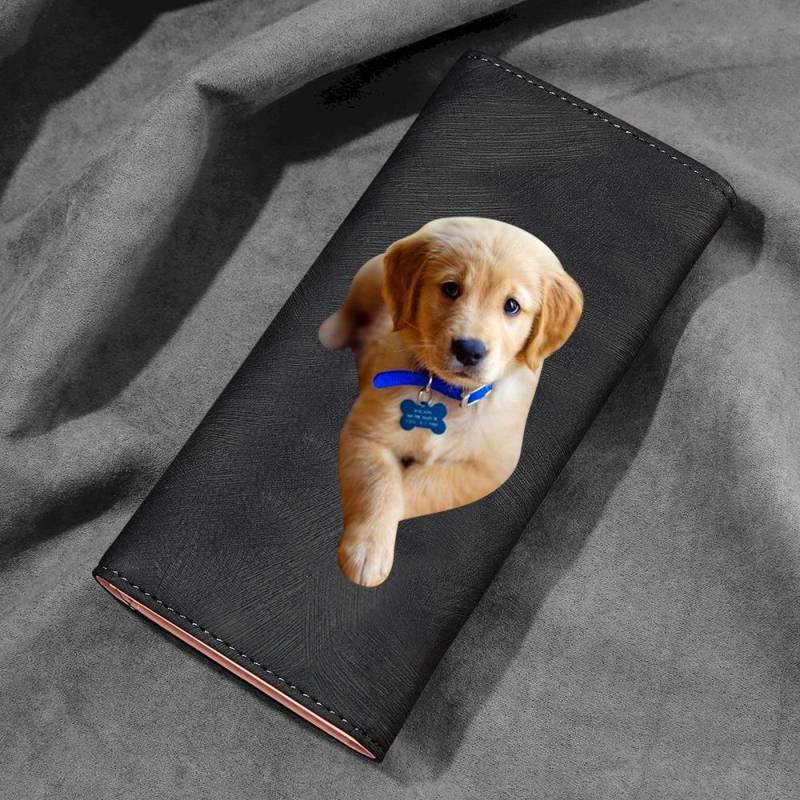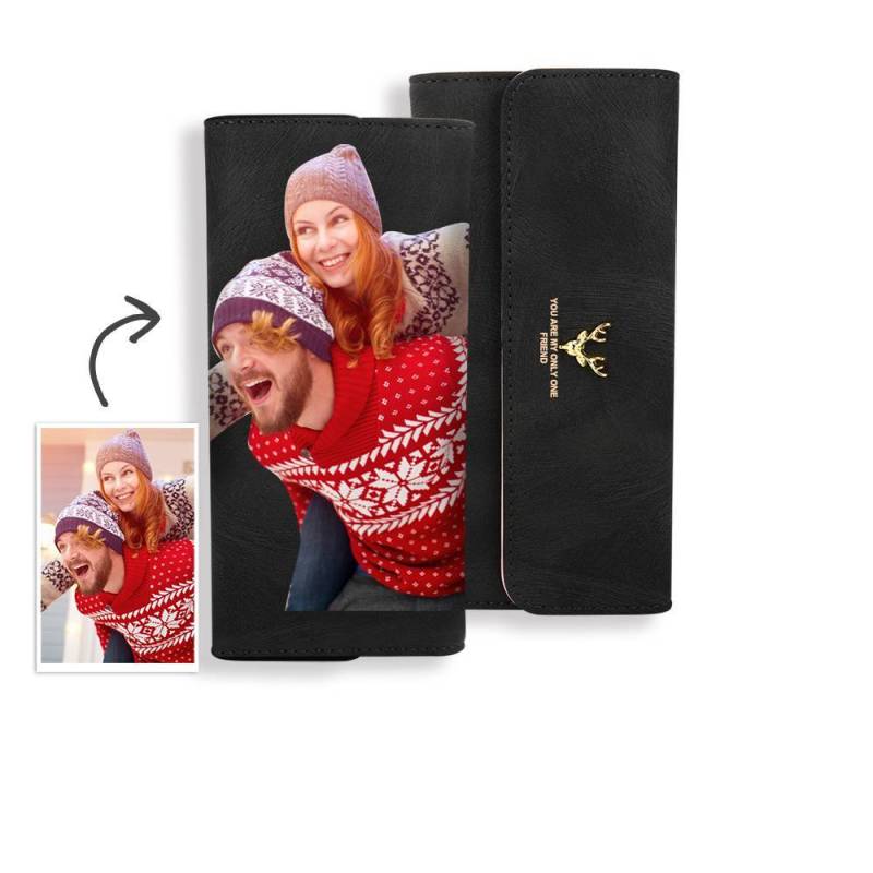 Women's Trifold Photo Wallet - Black Leather