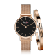 Black Dial Mesh Strap Watch & Infinity Bangle Set Rose Gold Plated