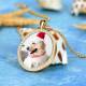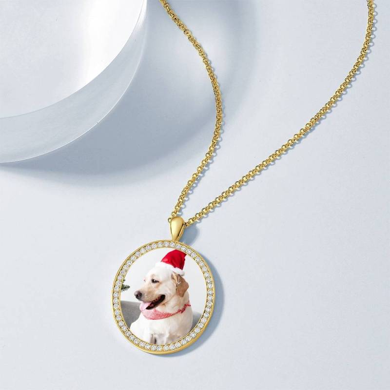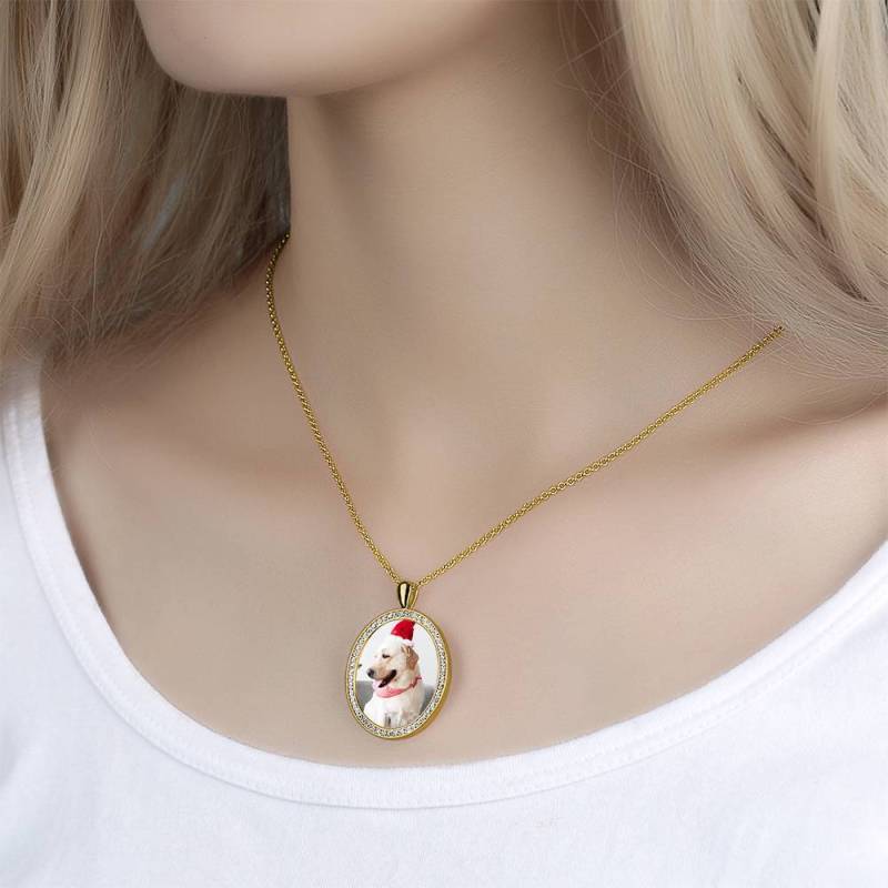 Women's Engraved Personalised Rhinestone Crystal Shield Shape Photo Necklace 14K Gold Plated Golden - Colorful